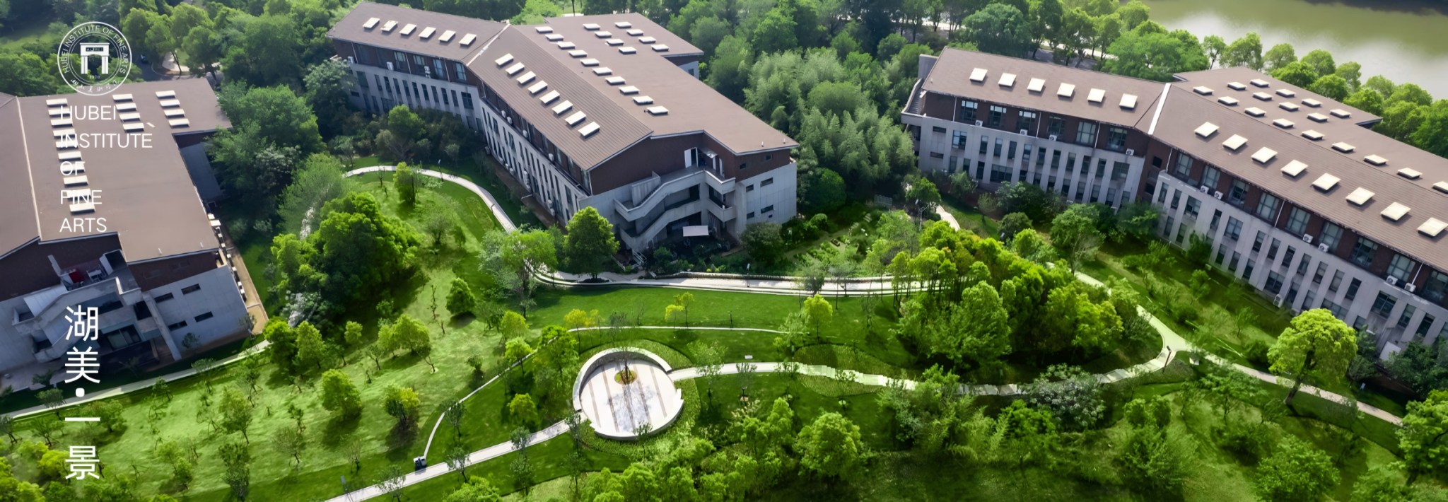 此处为湖北美术学院藏龙岛校区北面山体绿化景观提升工程完成后局部俯拍图。